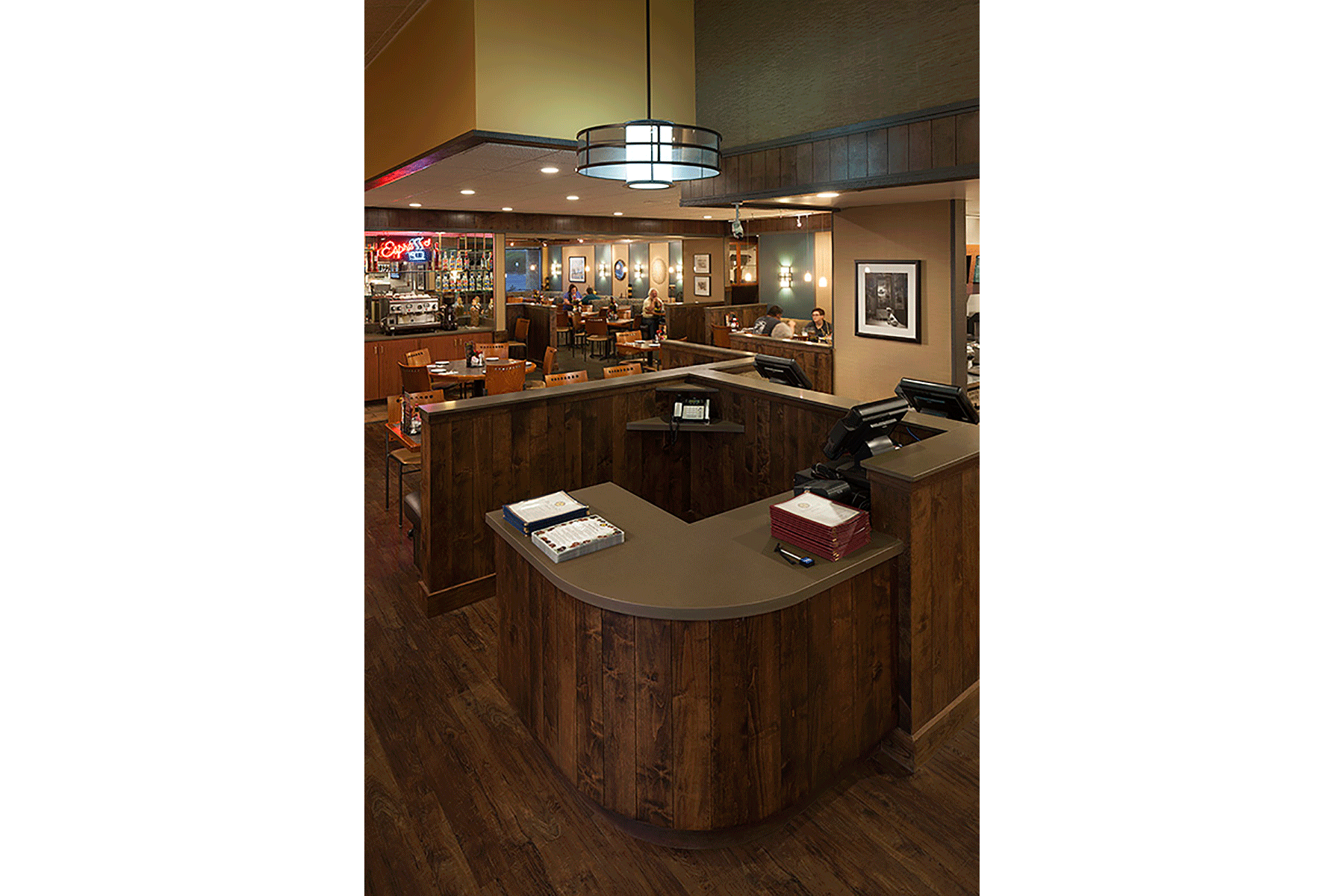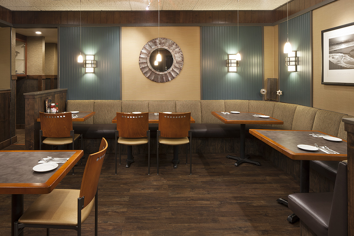 In a second remodel designed by Kathy, this interior reflects the restaurant’s location near a water channel, marinas, and the adjoining industrial neighborhood.